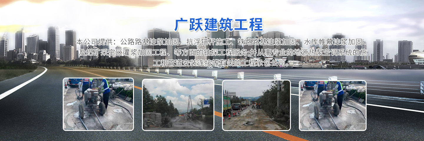 徐州廣躍建筑工程有限公司,公司成立于2010年,有專(zhuān)業(yè)施工人員50人,從事專(zhuān)業(yè)加固注漿施工。 本公司提供:公路路基注漿加固、抗浮錨桿施工、鐵路路基注漿加固、水庫(kù)帷幕注漿加固、及煤礦采空區(qū)灌漿加固工程、等方面的鉆探工程服務(wù);并從事專(zhuān)業(yè)的地源熱泵空調(diào)系統(tǒng)的施工和管道安裝連接等有關(guān)的工程承包公司。 公司成立以來(lái)一直專(zhuān)注于地質(zhì)鉆井工作,技術(shù)力量雄厚、設(shè)備先進(jìn):擁有專(zhuān)業(yè)的機(jī)械地質(zhì)鉆井精英隊(duì)伍;并具有GSY --150鉆機(jī)30余臺(tái)、GSY---200鉆機(jī)20余臺(tái)、專(zhuān)業(yè)回填封孔砂漿泵4臺(tái)等機(jī)械設(shè)備。公司稟承“優(yōu)質(zhì)的工程、優(yōu)惠的價(jià)格、優(yōu)良的售后服務(wù)”的經(jīng)營(yíng)理念,以“客戶(hù)滿(mǎn)意”為原則,著力打造一支高效、專(zhuān)業(yè)、信譽(yù)的工程服務(wù)團(tuán)隊(duì)。 具體服務(wù)項(xiàng)目:工程施工降水井、水源空調(diào)井、地源熱泵井、機(jī)鉆深井(工廠(chǎng)專(zhuān)用井)、石頭井、飲用水井、農(nóng)田井、地基降水處理、大型基坑降水、地下室、車(chē)庫(kù)以及橋梁注漿加固等業(yè)務(wù)。可用于廠(chǎng)生產(chǎn)用水,機(jī)械冷卻用水和生活用水,用水量可根據(jù)貴公司的需求量身訂做。